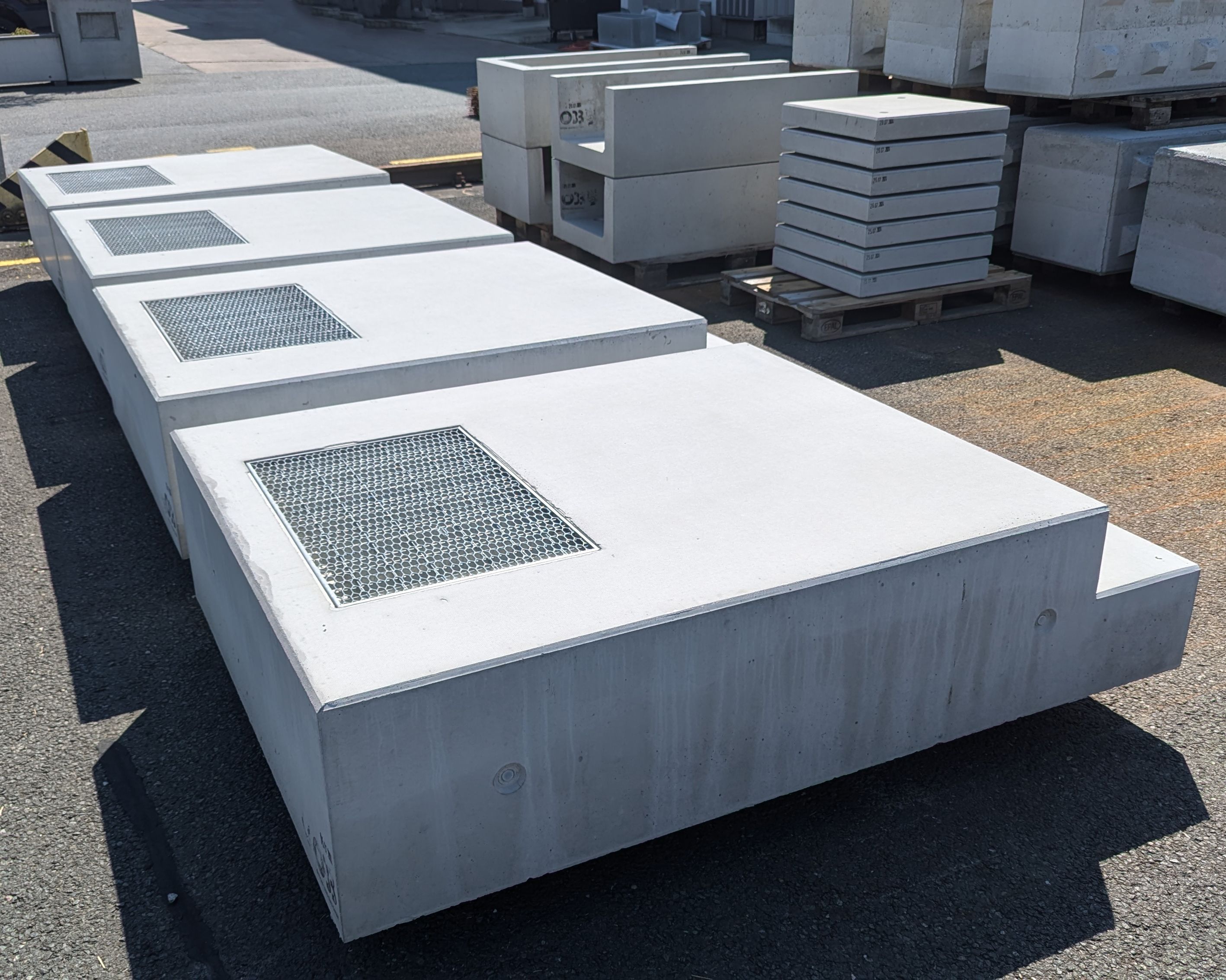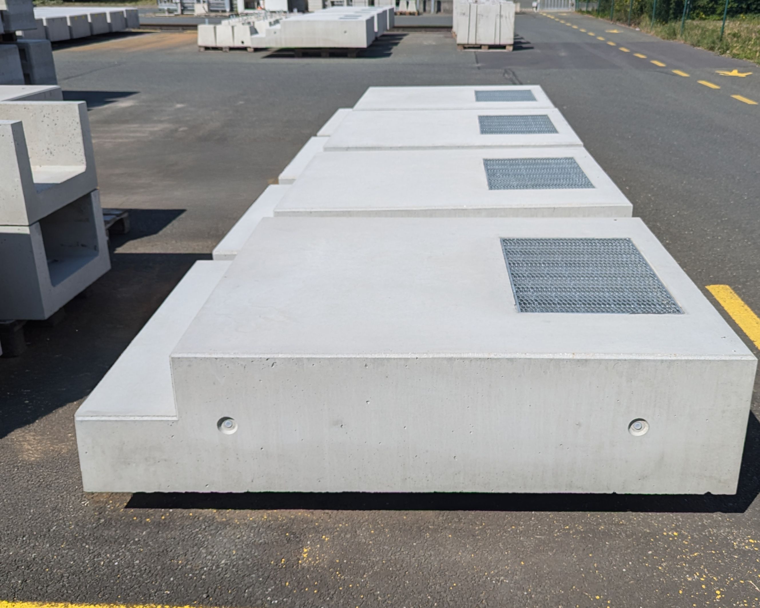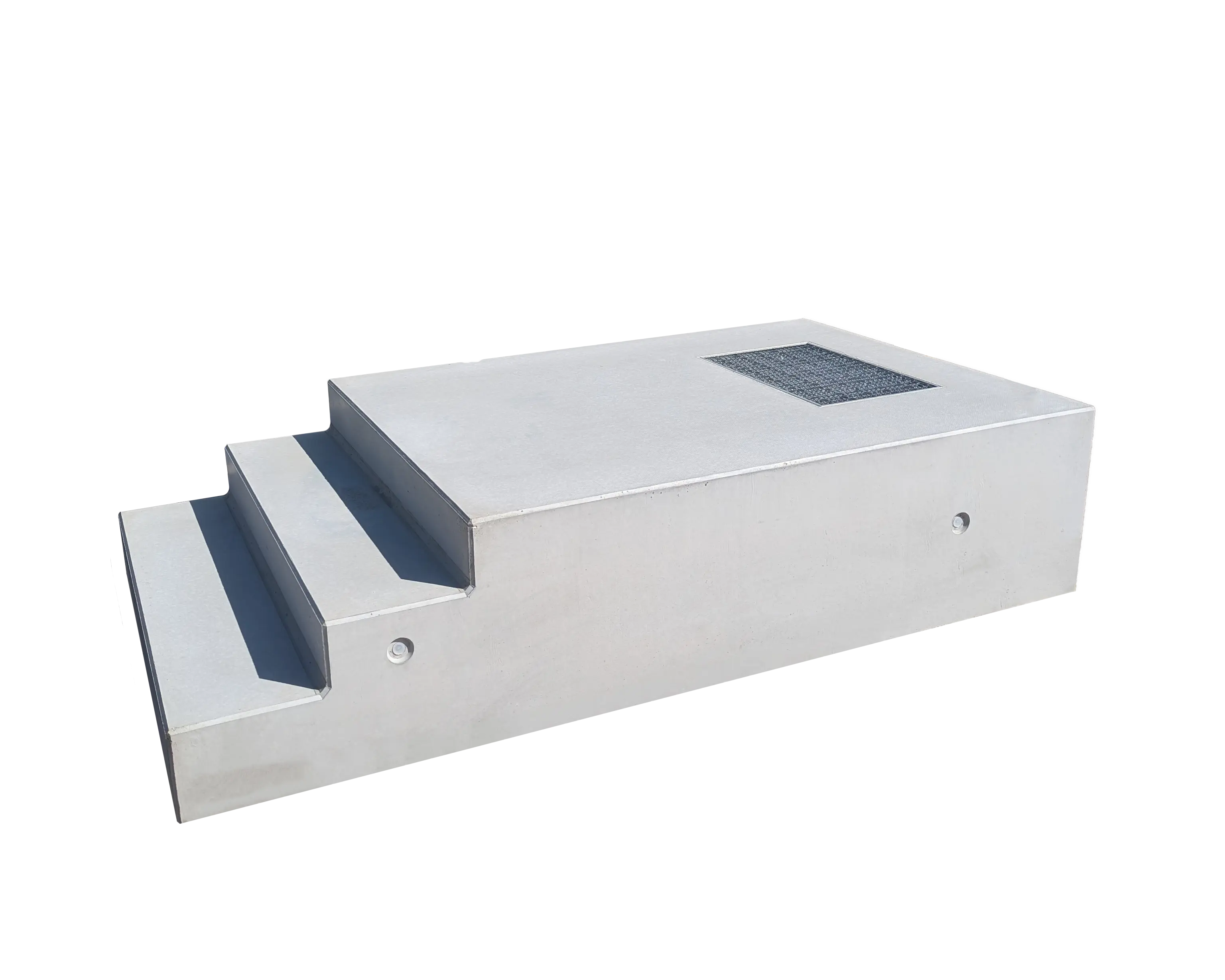 Zudem integrieren wir ein einbetoniertes Gitterrost (60 x 40 mm), das für einen reibungslosen Wasserablauf sorgt. Vier seitliche Gewindeanker sind integriert.