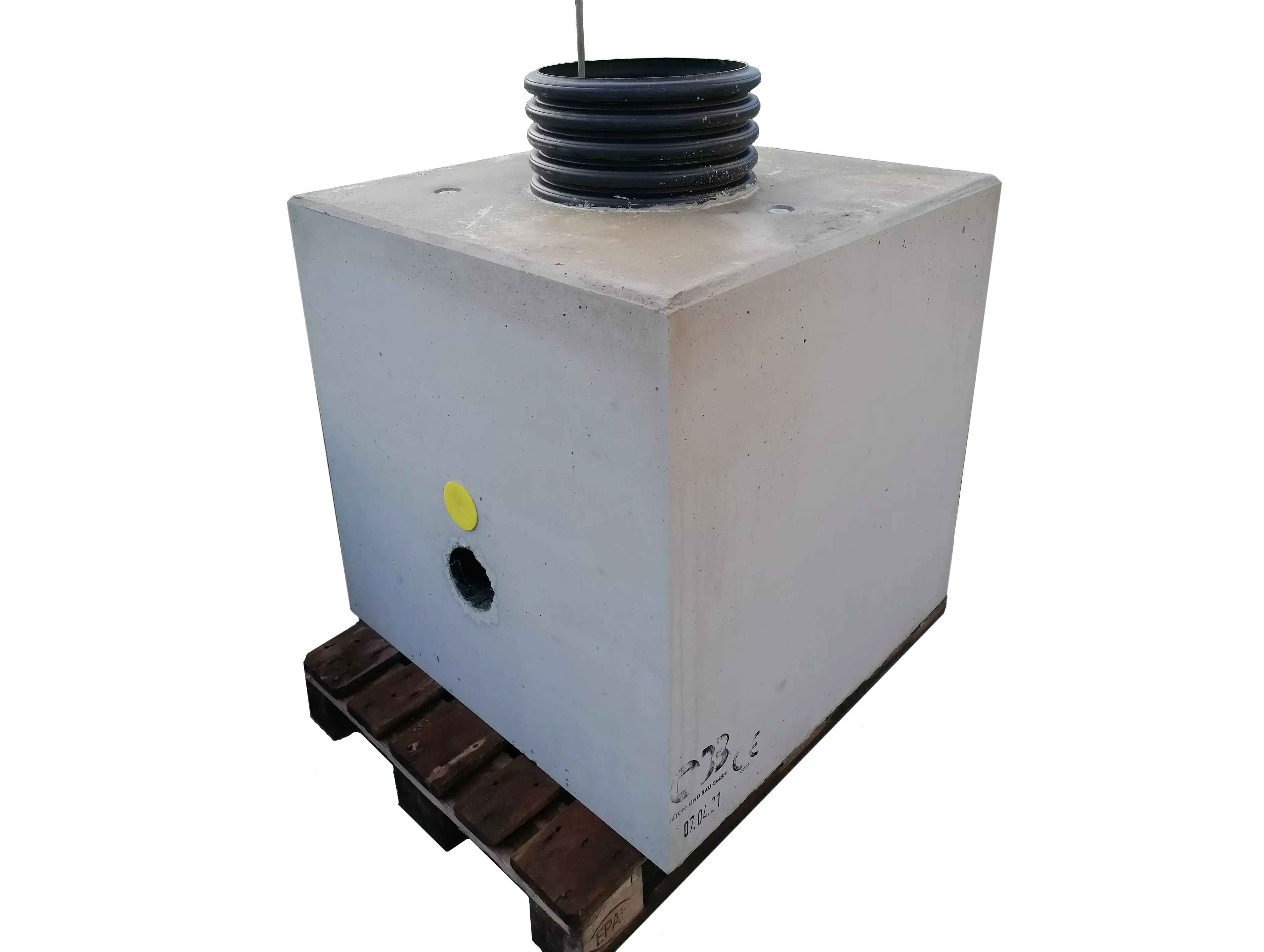 2 - Köcherfundament mit eingbautem Hüllwellrohr, Zuleitung, seitlichem Abgang und Erdungsbrücke